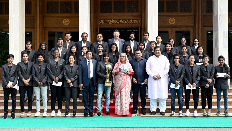 বাংলাদেশ জাতীয় মহিলা ফুটবল দলের ২৩ জন খেলোয়াড়ের প্রত্যেকের হাতে পাঁচ লাখ টাকার চেক এবং ১১ জন প্রশিক্ষক ও কর্মকর্তার প্রত্যেকের হাতে দুই লাখ টাকার চেক তুলে দেন প্রধানমন্ত্রী। পরে খেলোয়াড়রা প্রধানমন্ত্রীর হাতে ‘সাফ উইমেন্স চ্যাম্পিয়নশিপ-২০২২’ এর ট্রফি তুলে দেন এবং ফটো সেশনে অংশগ্রহণ করেন।